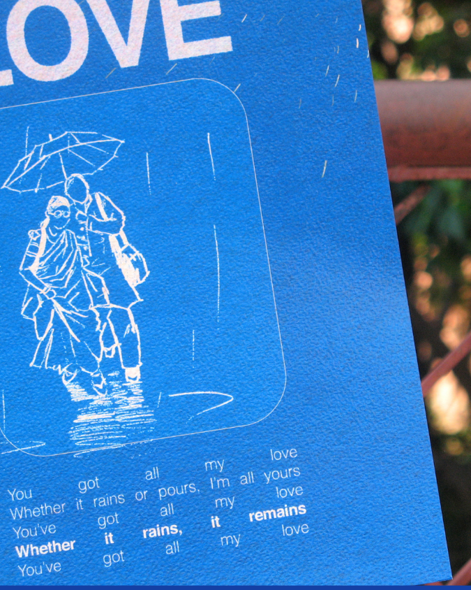 This print pulls from the Coldplay classic and turns it into a visual cue for loyalty that actually holds up. It leans into that rain-soaked, nothing-shakes-this feeling without getting cheesy. When the weather acts up, the message stays clear: some things are steady no matter what. Simple, clean, and sure of itself, just like the love it’s talking about.