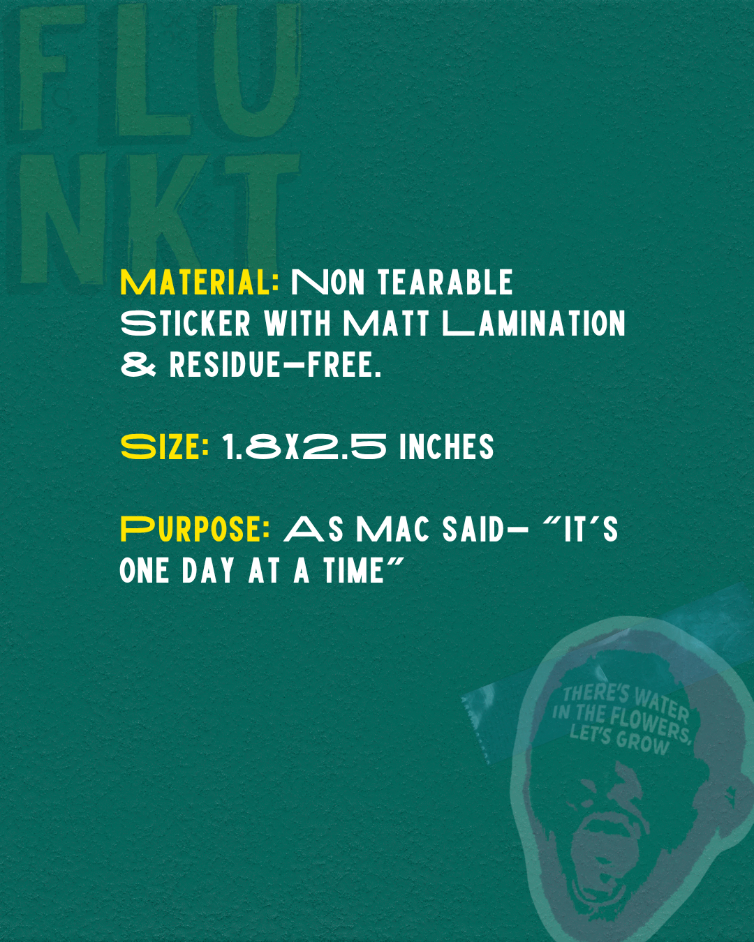 Material/FAQFlunkt ensures every product is crafted with love and attention to detail, making it perfect for collectors and enthusiasts alike. Our stickers are waterproof, durable vinyl—they’re built to survive your daily chaos.