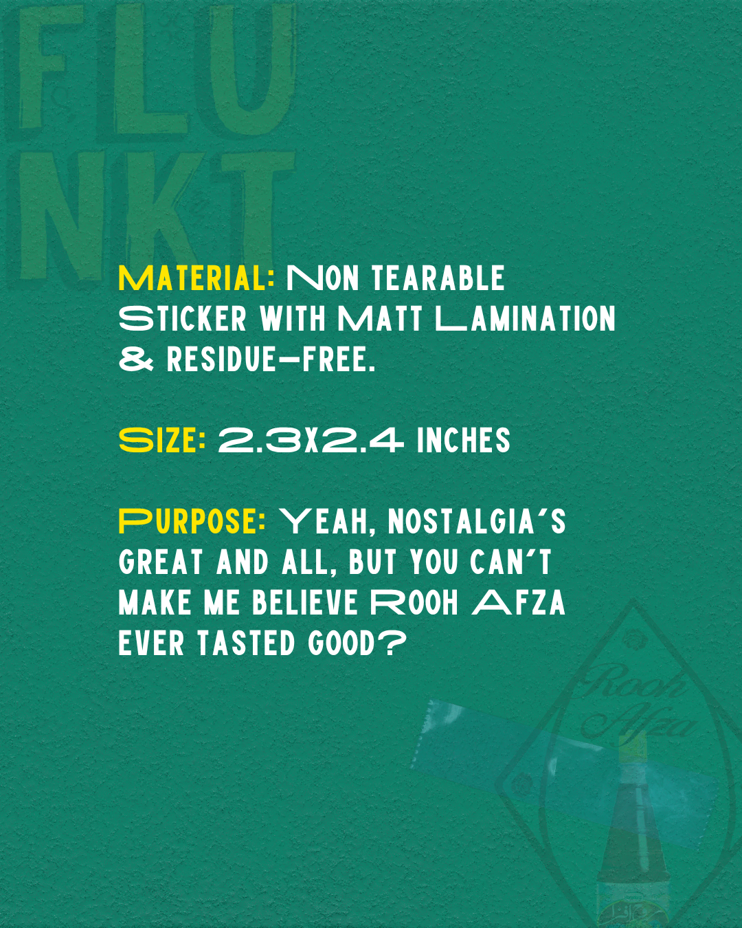Material/FAQFlunkt ensures every product is crafted with love and attention to detail, making it perfect for collectors and enthusiasts alike. Our stickers are waterproof, durable vinyl—they’re built to survive your daily chaos.