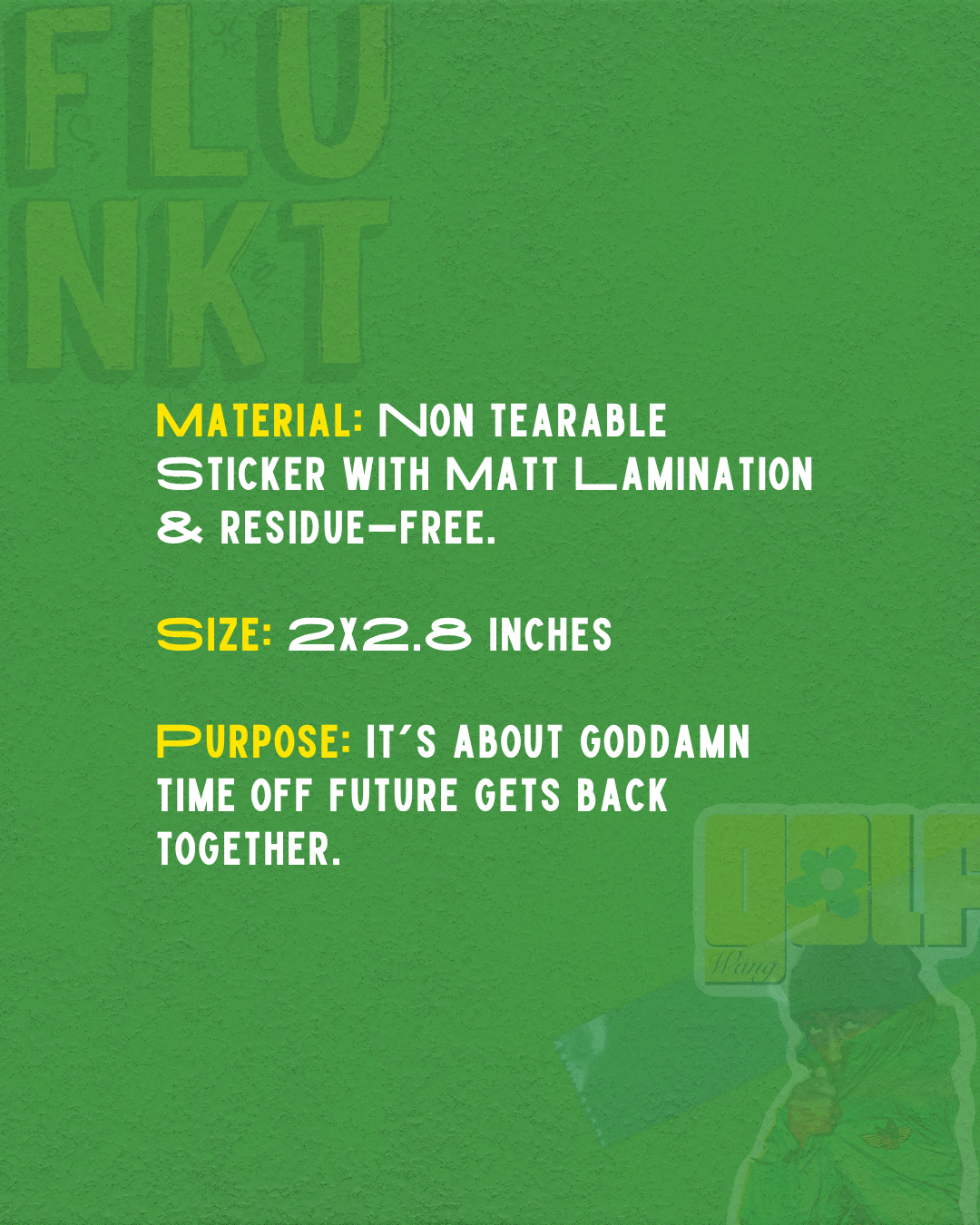 This sticker is for those who appreciate absurd genius and a perfectly curated aesthetic. Featuring a design inspired by Tyler, the Creator and his brand, it captures a mood of intense, self-conscious cool. It's a statement that declares it's goddamn time our future gets back together, provided, of course, that future is extremely stylish