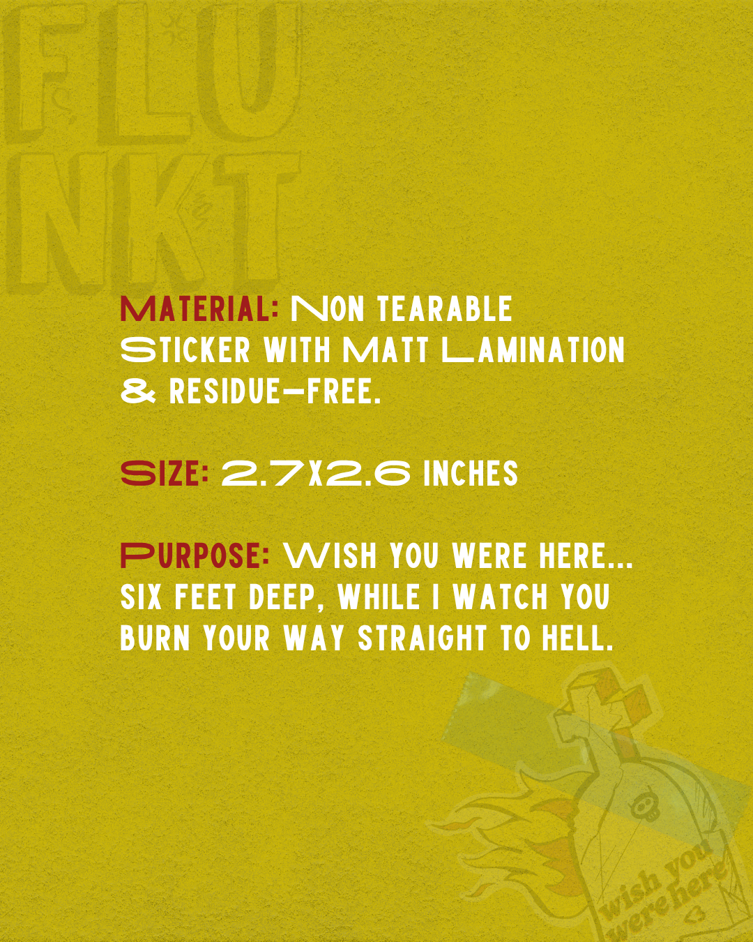 Material/FAQFlunkt ensures every product is crafted with love and attention to detail, making it perfect for collectors and enthusiasts alike. Our stickers are waterproof, durable vinyl—they’re built to survive your daily chaos.